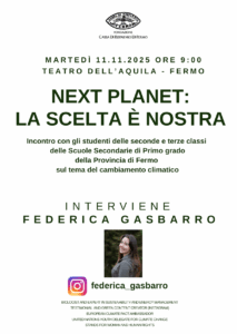 INCONTRO CON GLI STUDENTI DELLE SECONDE E TERZE CLASSI DELLE SCUOLE SECONDARIE DI PRIMO GRADO DELLA PROVINCIA DI FERMO SUL TEMA DEL CAMBIAMENTO CLIMATICO DAL TITOLO: “NEXT PLANET: LA SCELTA E’ NOSTRA”