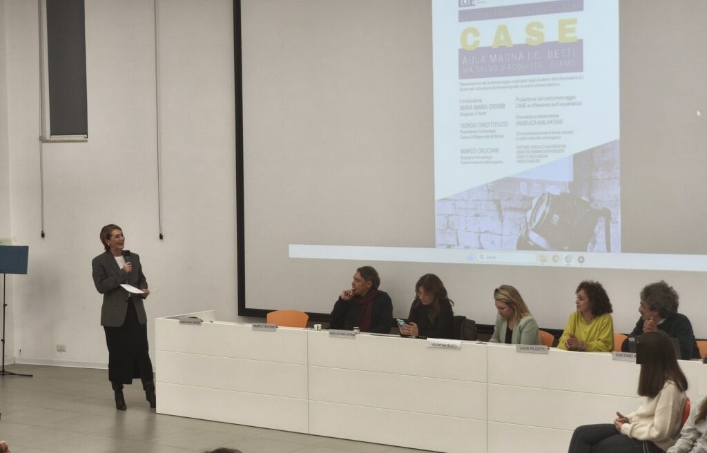Ieri pomeriggio nell’aula magna dell’Istituto Comprensivo “Betti” di Fermo è stato presentato il cortometraggio “Case” realizzato dagli studenti della scuola secondaria con il regista Marco Cruciani. Quattro il luoghi simbolo di Fermo raccontati dai ragazzi attraverso il linguaggio cinematografico.