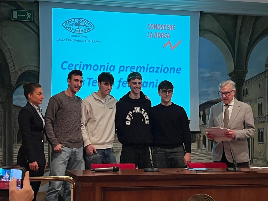 Si è tenuta questa mattina a Palazzo Matteucci, sede della Fondazione Cassa di Risparmio di Fermo, la cerimonia di premiazione dei team fermani vincitori del concorso “Conoscere la Borsa”.
